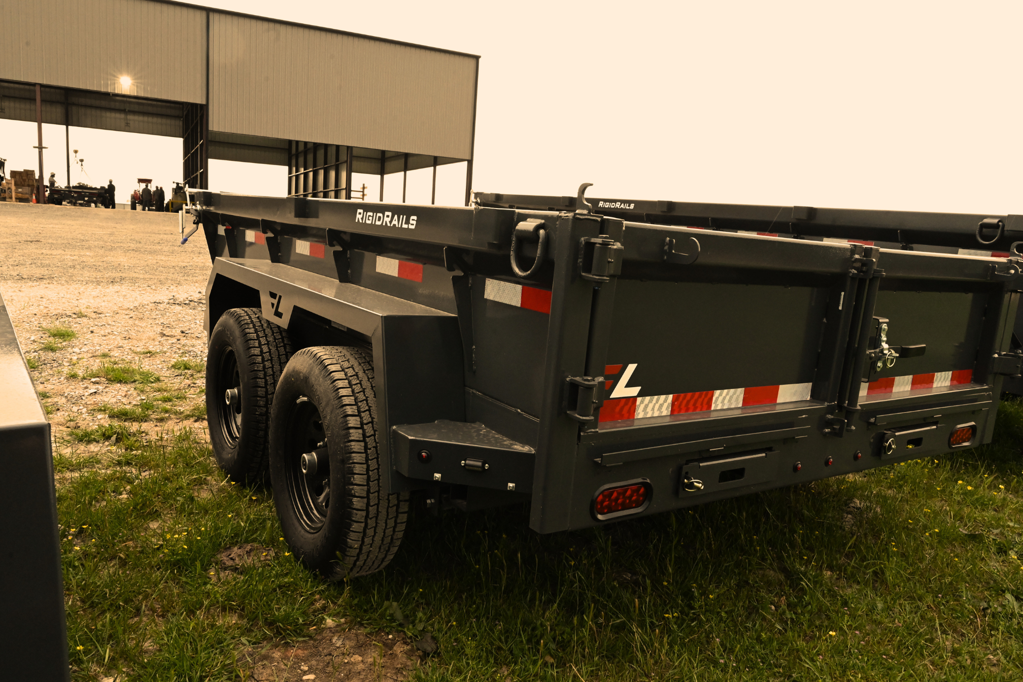 Our medium dump trailer comes fully equipped with premium suspension and hydraulics, a durable 5” channel frame, cold-rated wiring and LED lights, super durable powder coating, d-rings, and a barn door gate.